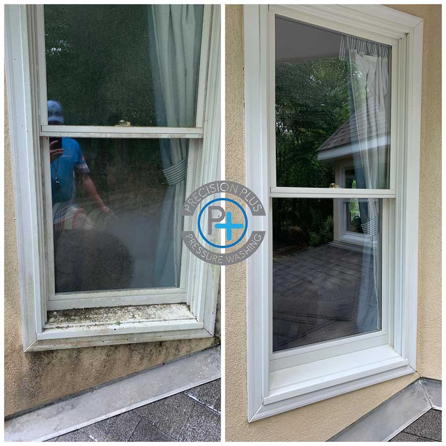 A beautiful home that we completely transformed in the Woodstone Subdivision. The house had heavy algae, moss, and lichen growing. We were able to safely remove all organic growth using a Softwash method. We also scrubbed the gutters to brighten, cleaned debris from the roof and gutters, and washed the driveway. Thank you for trusting Precision Plus to wash your home.